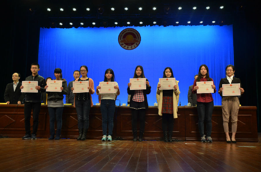 2015年4月2日晚18点30分,公司2014年度国家奖学金颁奖典礼暨首场巡讲活动在大活礼堂隆重举行。公司2011级张娟(女)、2012级马秋方(女)、2013级尤晶晶三名同学凭借自身努与过人实力在国家奖学金评选中脱颖而出,荣获2014年度国家奖学金。