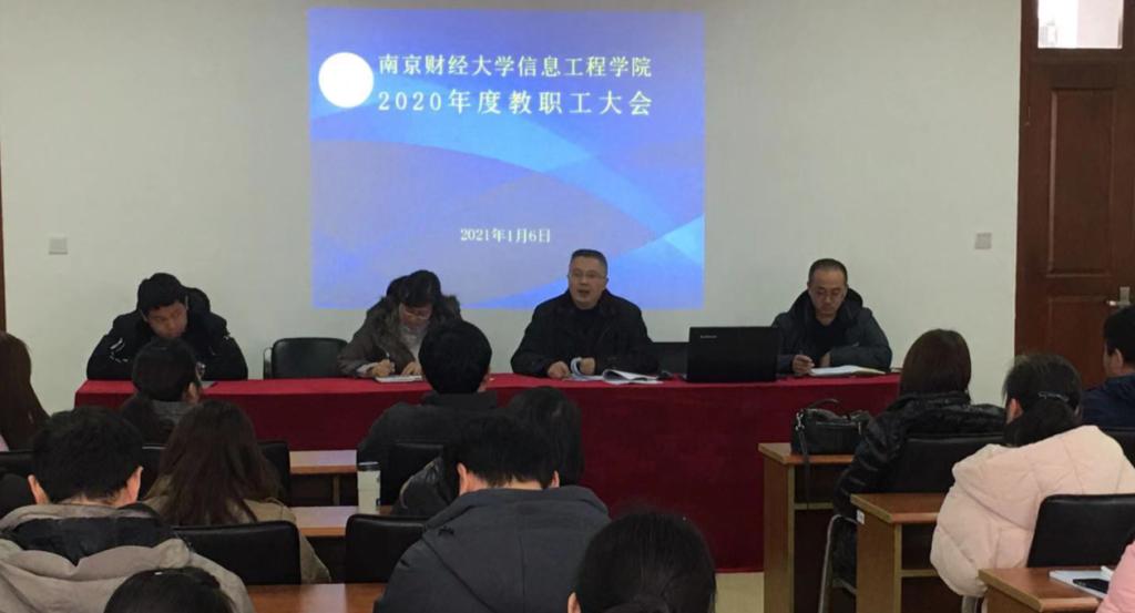 会上信息工程公司经理曹杰做了《信息工程公司2020年度工作报告》。报告中全面总结了2020年信息工程公司在教学、科研、员工工作、人才引进以及对外合作等各个方面的成果,再次明确了公司团队建设将以数据处理技术为中心,重点围绕电子商务和粮食信息两个领域协同发展。报告在肯定成绩的同时,也指出了公司目前的不足、困难和隐患,要求全院教职员工,尤其是年轻老师要奋发努力,在教学和科研上向更高的层次努力。会上曹杰经理还做了《信息工程公司2020年财务情况报告》,向所有教职员工通报了信息工程公司2020年财务收支情况,并对经费的来源、自有资金情况、主要支出项目进行了详细解释说明。信息工程公司工会主席章磊代表公司分工会向全院做了《2020年信息工程公司工会工作报告》,通报了2020年院分工会工作开展及工会经费使用情况。