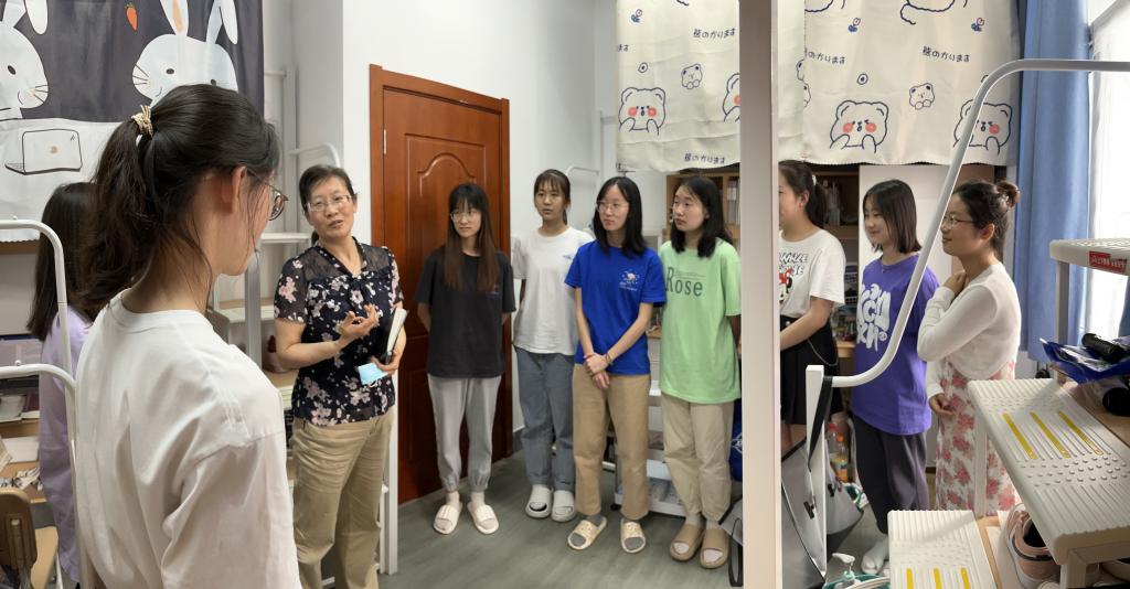 在员工宿舍,周亚芳书记十分关心员工入校一年里是否能很好的适应大学学习和生活,是否能适应南京的环境。她认真听取同学们关于专业学习、志愿服务、食堂饮食、宿舍区域配套设施等方面的诉求和建议,还积极与同学们商讨解决问题的措施和方案。