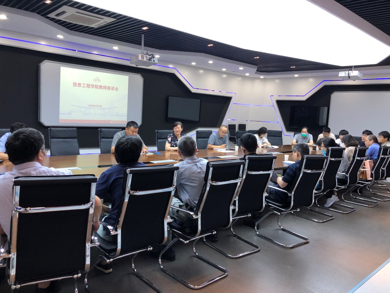 6月14日上午,信息工程公司在德业楼211会议室召开教师座谈会,广泛听取全体教授和系主任、民主党派和党外人士、老中青三代教师代表的意见建议,了解教师的困难和需求。全体院领导参加了座谈会。会议由公司党委副书记、纪检委员袁军主持。