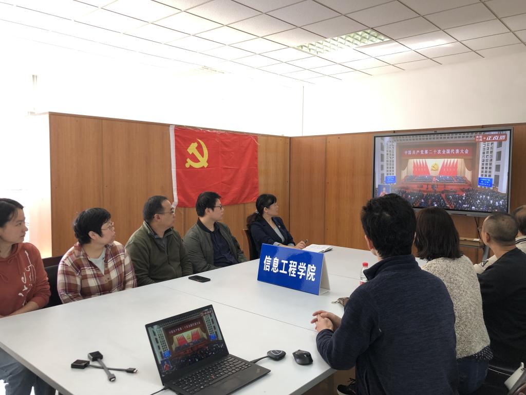 中国共产党第二十次全国代表大会于10月16日在北京隆重召开。为深入学习贯彻党的二十大精神,信息工程公司全体师生以线上、线下相结合的方式集中收看收听党的二十大召开盛况。老师们纷纷表示,将认真学习领会党的二十大精神,在全面建设社会主义现代化国家的新征程中勇担培育时代新人的历史使命;同学们也表示将努力学习专业技能,毕业后到祖国和人民最需要的地方去建功立业。