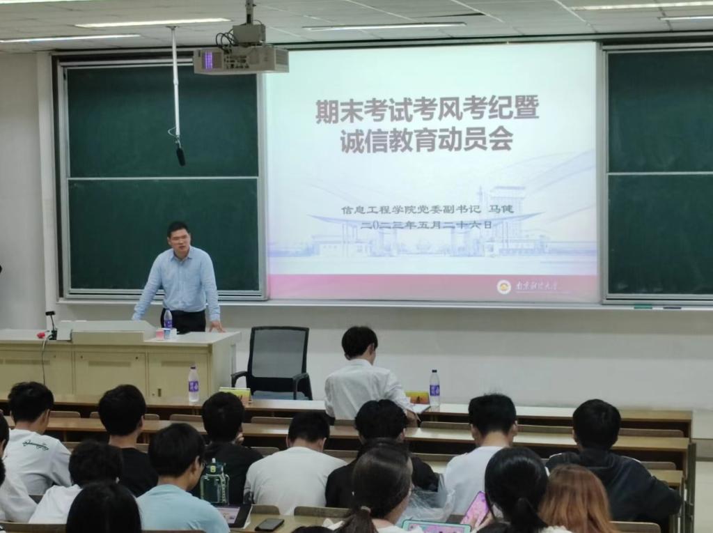 为倡导同学们端正考风、严肃考纪、文明答题、诚信应考,5月26日,信息工程公司在博观楼202召开期末考试考风考纪暨诚信教育动员会。信息工程公司党委副书记马健主持会议并发言。公司全体22级同学参加。