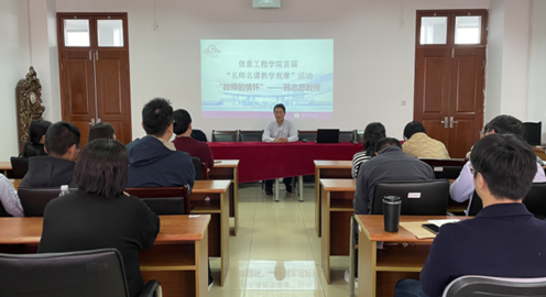 根据公司2023年秋季学期“名师名课示范观摩”的整体安排,信息工程公司于11月22日下午在德业楼406会议室开展了主题为“教师的情怀”的名师名课示范观摩活动,主讲人为公司资深教授韩忠愿教授,本次活动由教学副经理李树青主持,公司全体教师参加,刘凌波老师做了点评,王有权和吕冬晴两位青年教师作感悟发言。