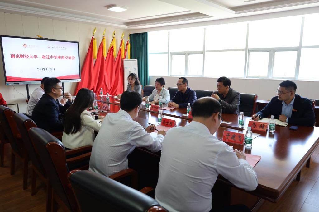 在宿迁中学明德楼会议室,韩力争部长一行与宿迁中学张德超董事长、纪文杰副董事长、徐士权副董事长、于建飞主任等进行座谈交流。张德超董事长在致辞中介绍宿迁中学百年发展历史沿革,并愉快回忆起2022年应南财之邀出席新生开学典礼的点滴,感谢南财一直以来对宿迁中学及宿中学子的支持与厚爱,并表示将一如既往地加强两校的合作,共同为青年员工成长成才保驾护航。韩力争部长在致辞中对宿迁中学的热情接待表示衷心的感谢,介绍了公司近年来的发展成就和宿中学子在南财取得骄人成绩,希望宿迁中学能继续源源不断的向公司输送优质生源,不断扩大两校合作的深度和广度。公司员工、宿迁中学2017届毕业生、宿迁市宿城区委组织部人才科潘美羽参加座谈交流。