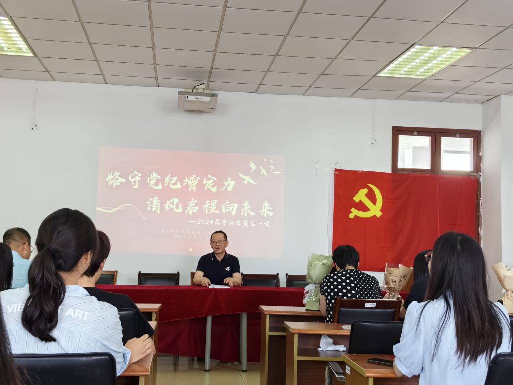 6月17日,在2024届毕业生即将离校奔赴人生新征程之际,信息工程公司在德业楼406会议室组织开展主题为“恪守党纪增定力·清风启程向未来” 毕业生最后一课,公司党委书记张阳军以及全体2024届党员毕业生参加党课,活动由公司党委副书记马健主持。