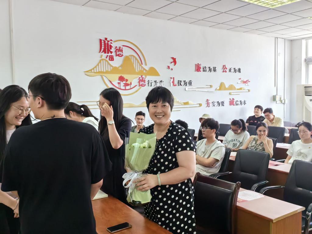 活动伊始,毕业生代表制作了视频,回忆在公司四年的点点滴滴,并为辅导员老师们送上精心准备的鲜花,感谢老师们的谆谆教诲。