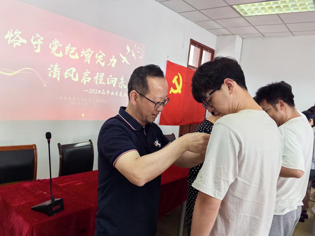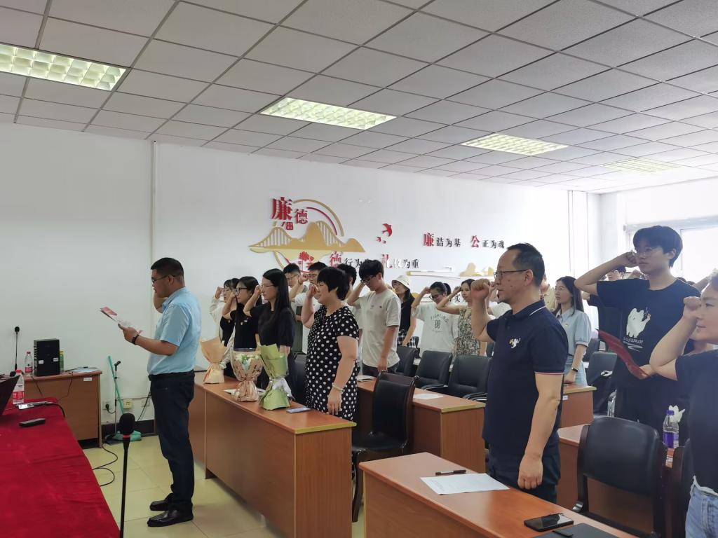 会上,公司领导和老师为毕业生党员再次佩戴上党员徽章,并为全体毕业生党员发放“党员政治生日卡片”。随后,大家在公司党委副书记马健的带领下重温入党誓词。