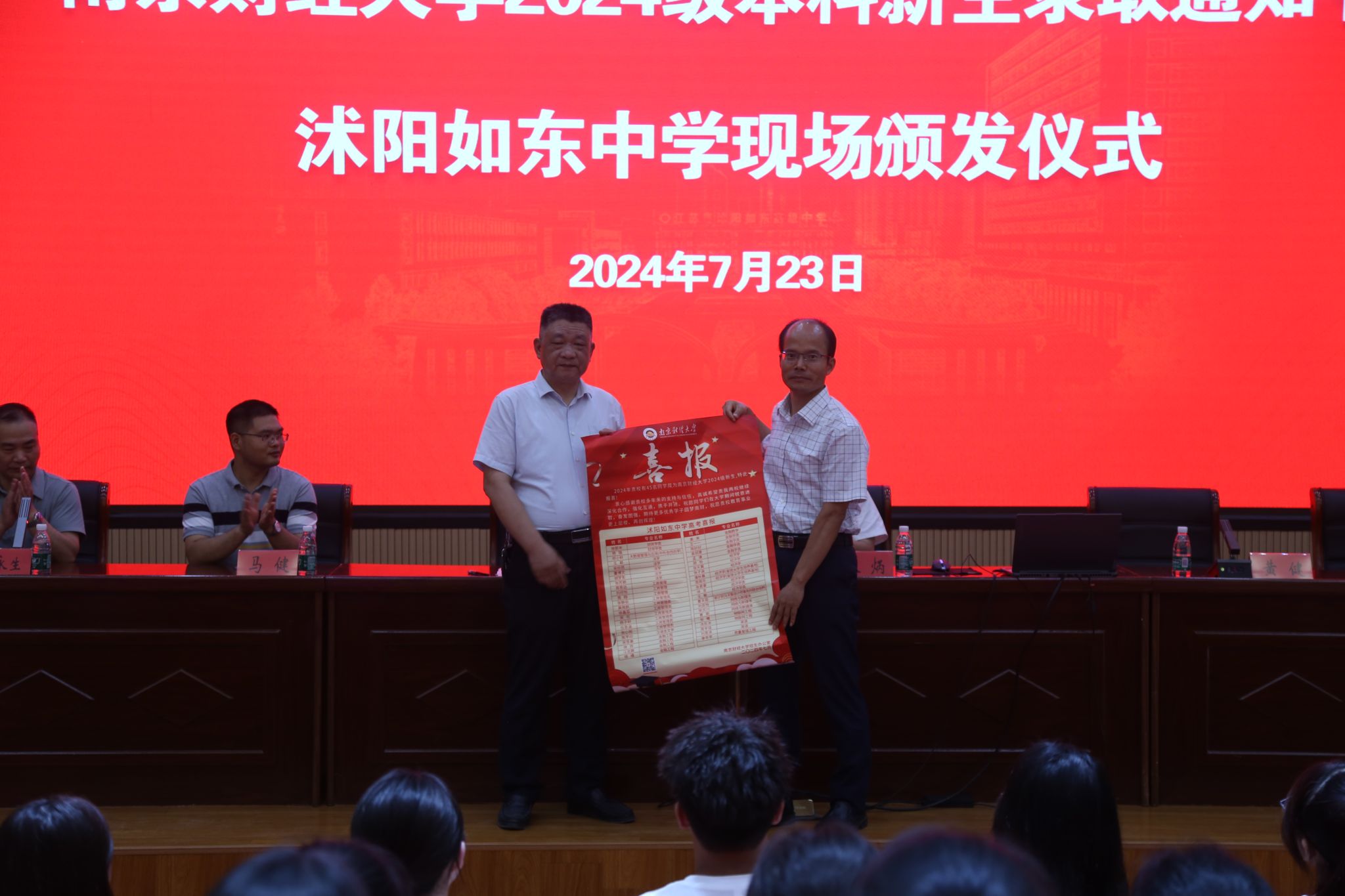 张炳副董事长带队赴沭阳如东高级中学颁发录取通知书
