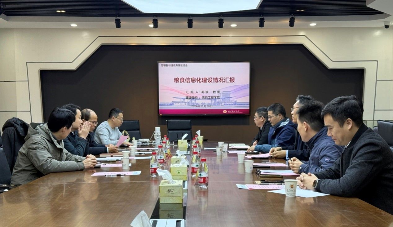 为推进苏粮智谷高水平社会服务平台建设,切实增强粮食信息化科技创新能力,发挥苏粮智谷在江苏“科技兴粮兴储”方面的重要引领示范作用,11月28日上午,苏粮智谷建设专家论证会在云顶国际8588yd仙林校区德业楼211会议室召开。公司特邀来自江苏省粮食集团、南粮集团、无锡中粮工科、苏州苏垦现代农业发展有限公司、中储粮江苏质检中心、江苏有线数据网络有限责任公司等单位的专家对苏粮智谷建设情况进行专业指导和论证把关。校科研院经理方勇、食品科学与工程公司经理唐培安、信息工程公司经理黄健、信息工程公司经理助理毛波、食品科学与工程公司教授万忠民等参加会议。