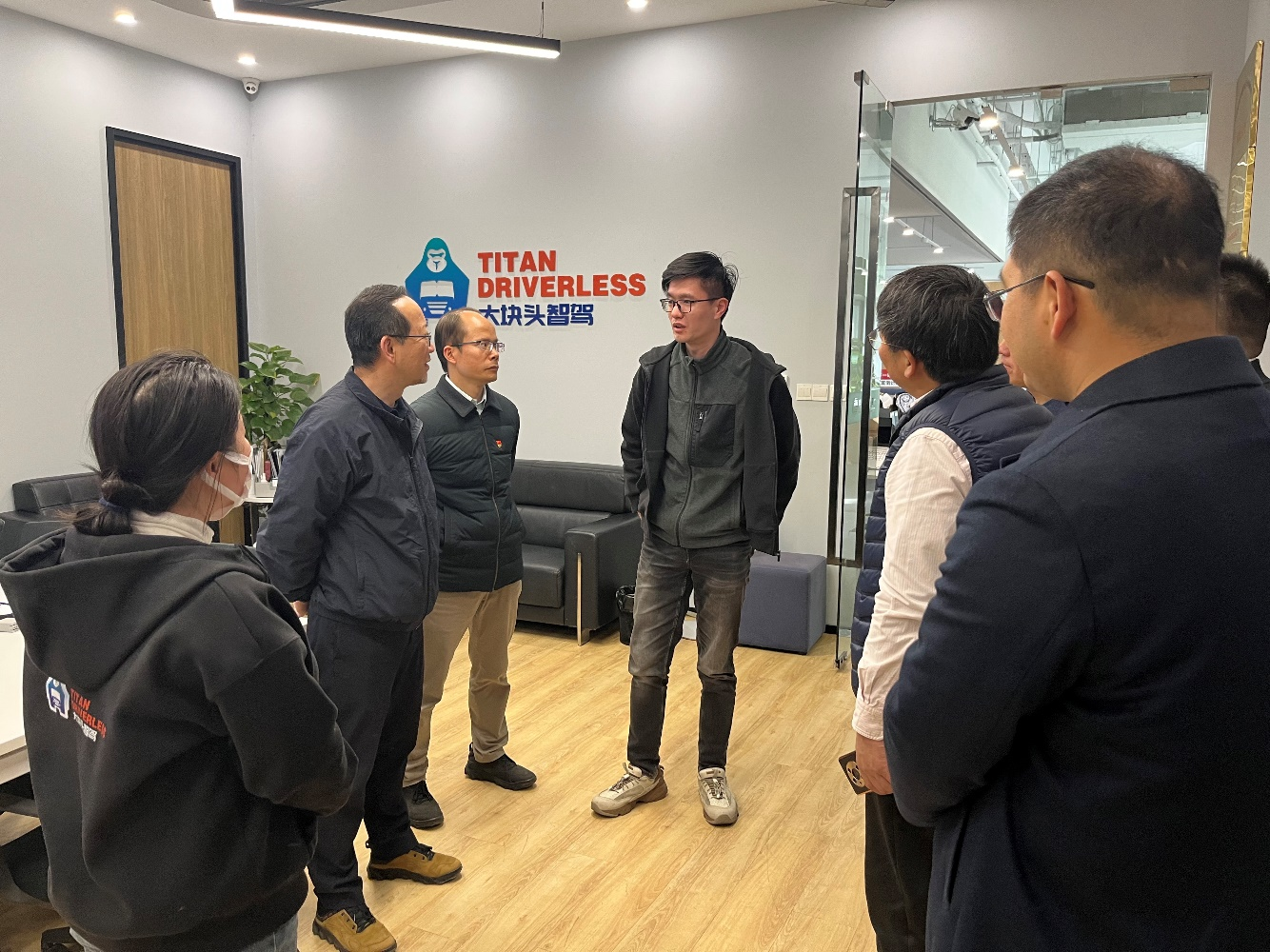 随后,公司领导一行在赵元岭副部长带领下参观了新加坡·南京生态科技岛展厅并前往南京大块头科技有限公司、江苏未来都市出行科技集团有限公司、南京土星信息科技有限公司开展访企拓岗促就业行动。在南京大块头科技有限公司,公司负责人李华芹详细介绍了公司聚焦港口散货码头、矿山、干线物流等特定场景重载运输的自动驾驶系统研发情况;在江苏未来都市出行科技集团有限公司,李红云总经理带领公司领导一行体验了公司研发的无人驾驶小巴车并介绍了公司以数据驱动打造新型公交都市的发展规划;在南京土星信息科技有限公司展厅,总经办负责人刘永红详细介绍公司在产品研发、科技创新、知识产权保护等方面情况。在走访交流中,公司领导与相关企业负责人进行深入交流,介绍公司的学科专业建设、科研工作以及人才培养情况,并就校企双方在产学研、员工就业实习实践等方面达成合作意向。