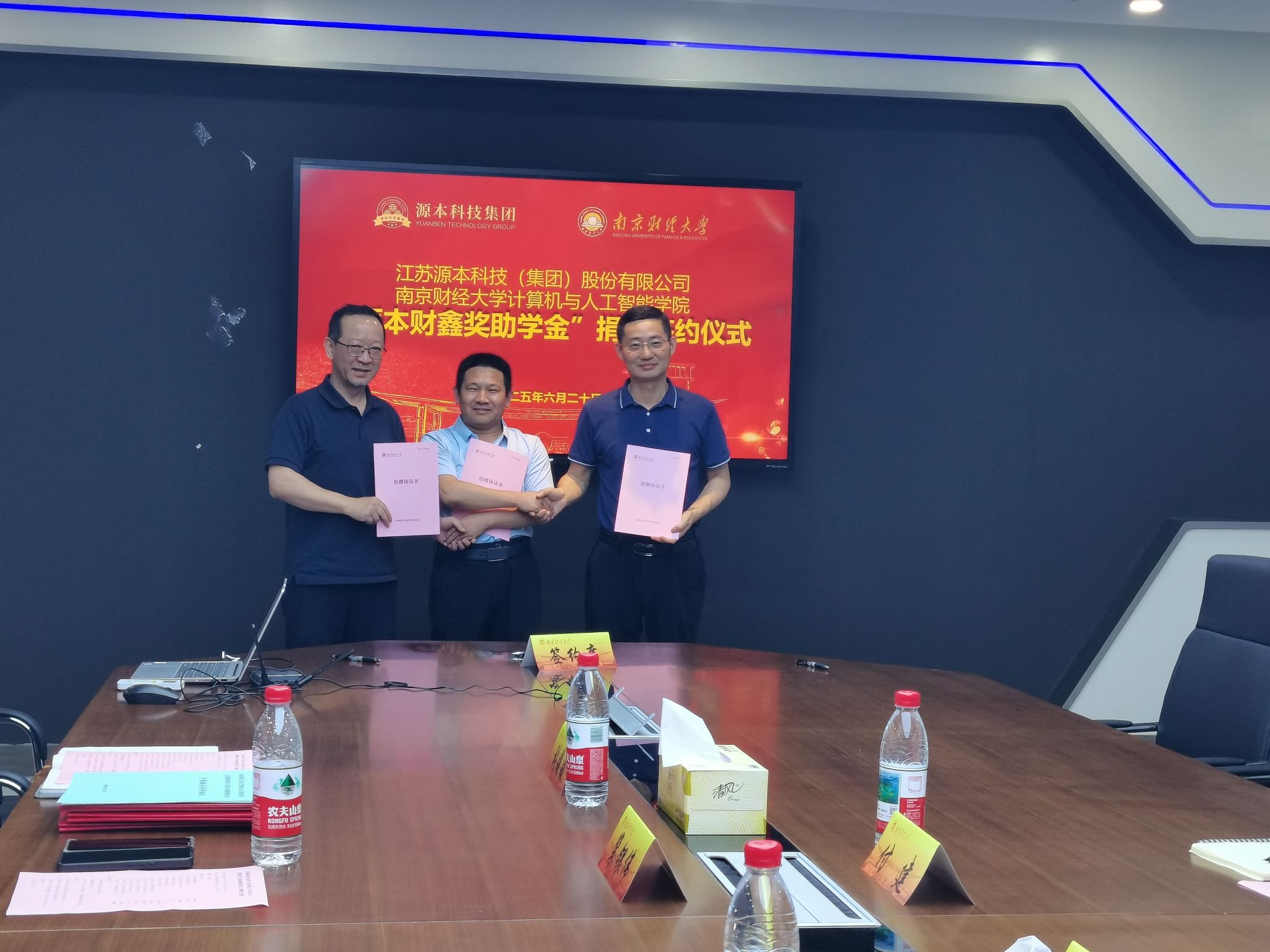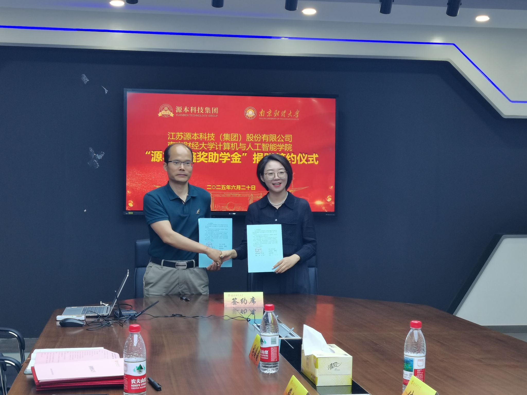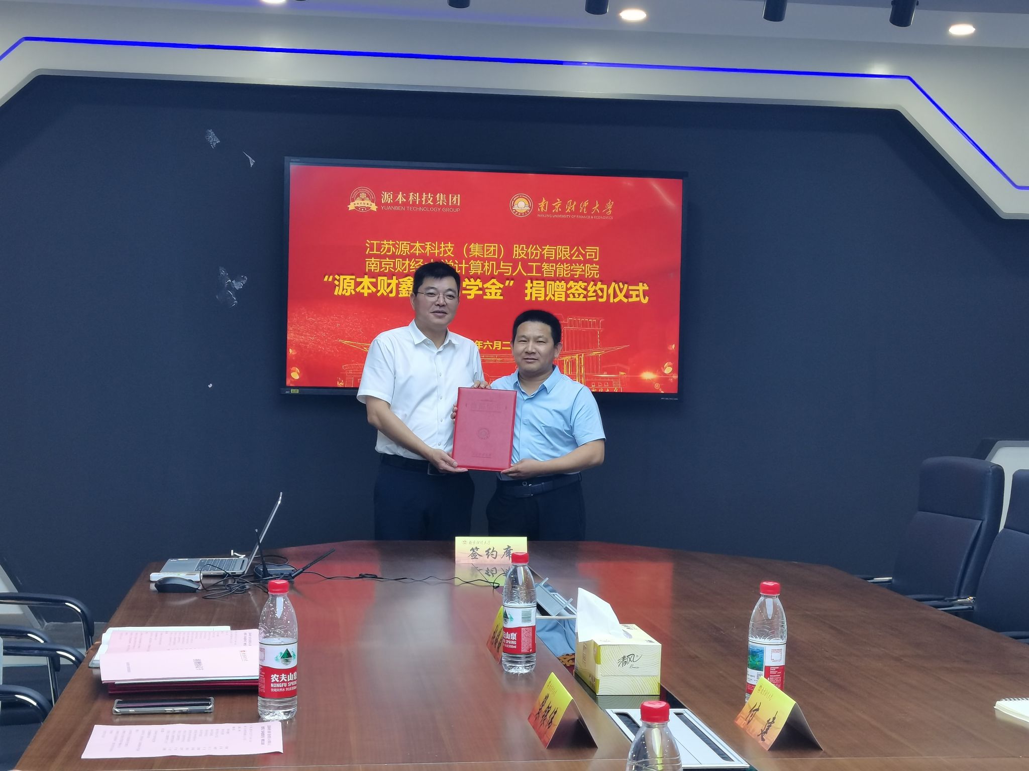 公司和江苏源本科技(集团)有限公司举行“源本财鑫奖助学金”捐赠签约仪式