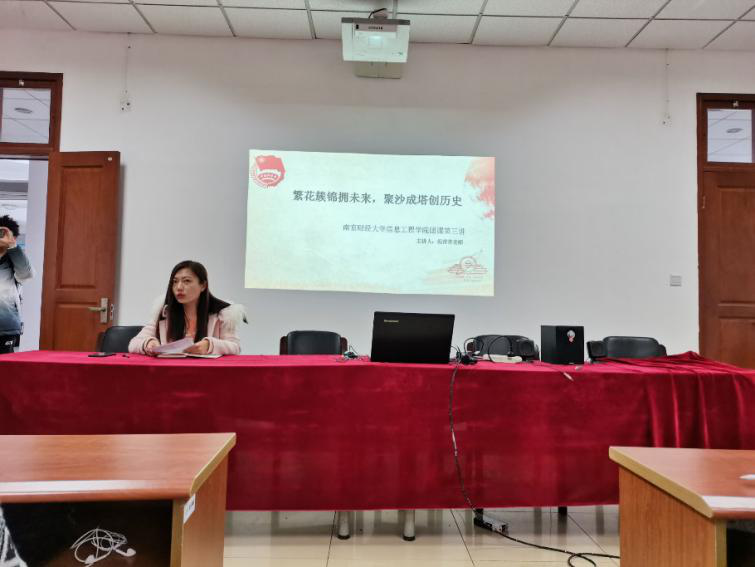 12月2日,公司于德业楼406会议室开展的以“繁花锦簇拥未来,聚沙成塔创历史”为主题的团课活动圆满落幕。本次课程由信息工程公司18级辅导员倪青青老师担任主讲人,19级与20级各班代表参与学习。
