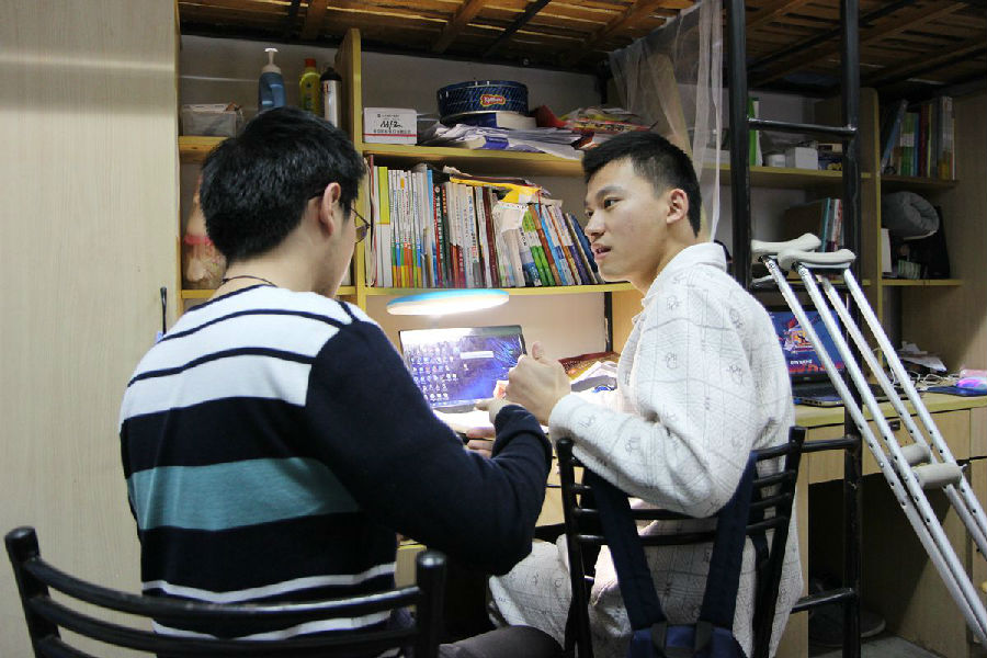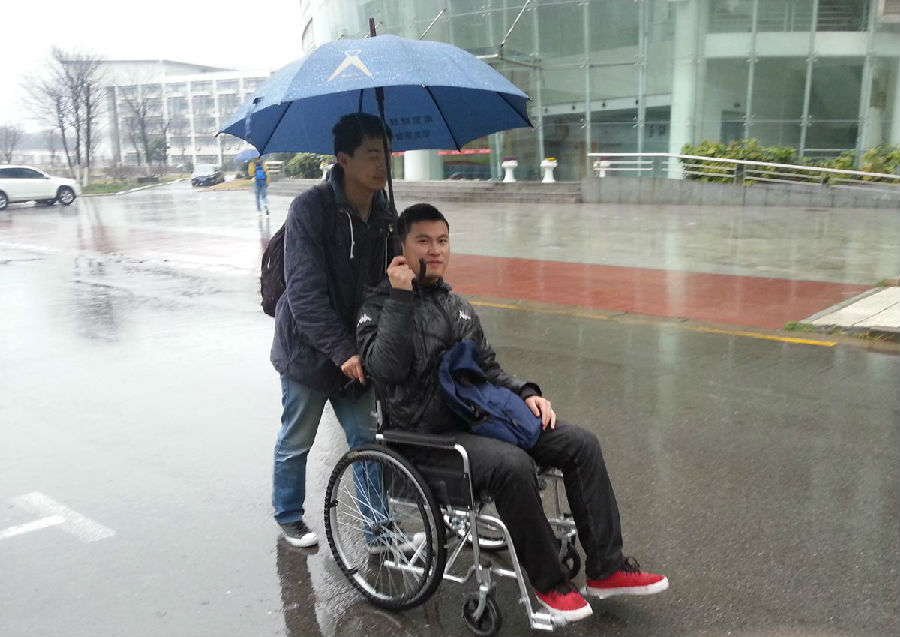 今年寒假,公司信息管理与信息系统1301班的周同学因膝盖受伤做了手术,术后有一段较长的恢复期需要坐轮椅。为不耽误学业,在家休养一段时间后该生重返校园,然而行动上的不便对他的日常活动产生了非常大的影响。了解到相关情况后,该生同班同学立即召开了班委会,并自发组成了志愿小组,由大家排班轮流来负责照顾周同学的学习起居生活。近一个月以来,每天早晨上课之前小伙伴们就来到周同学位于中苑11号站的寝室,背他走下楼梯,并用轮椅推送他去专业楼上课,风雨无阻。针对周同学在家休养时缺席的课程,公司成绩较为优秀的员工主动提出帮助周同学补习功课。在细致的讲解以及互相探讨交流中,周同学很快就跟上大家的学习进度,对课程不再担忧。