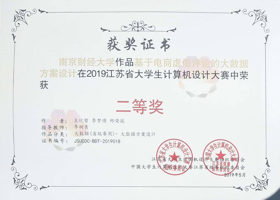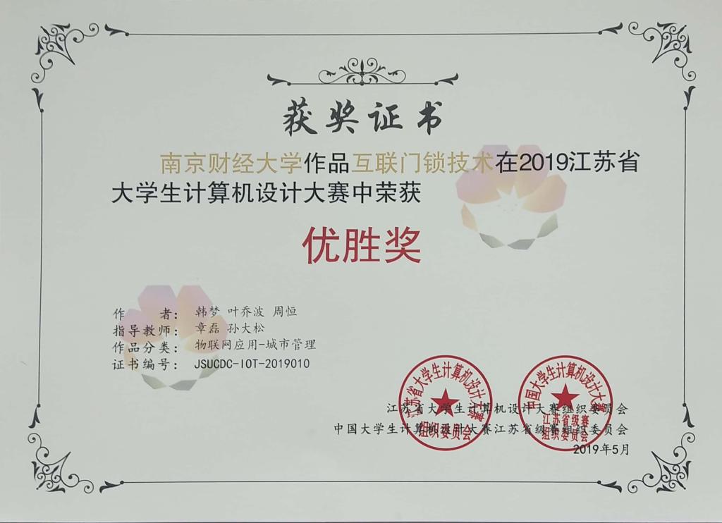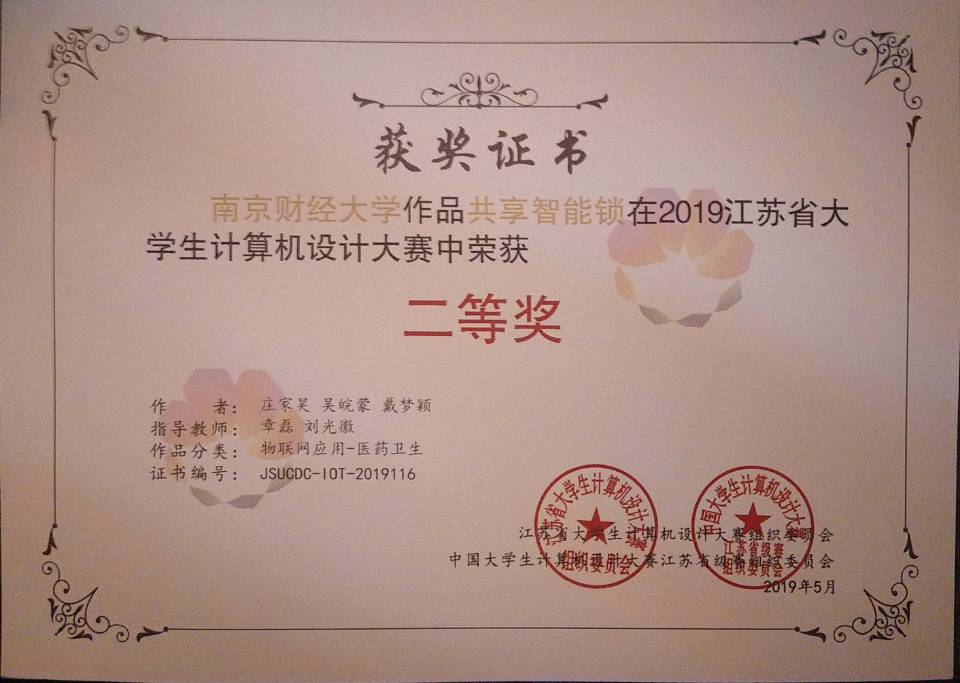 近日,由江苏省教育厅高等教育处组织,江苏省计算机学会主办的2019江苏省计算机设计大赛暨全国老员工计算机设计大赛江苏赛区现场决赛在江苏徐州中国矿业大学落下帷幕。公司选送的四件作品参加了这项赛事的角逐,其中由公司李树青老师指导,2018级李梦倩、王欣哲、邱荣燚等三位同学创作的“基于电商虚假评论的大数据方案设计”获得“大数据(省级赛用)- 大数据方案设计”普通组本科组二等奖,由章磊老师指导,2016级庄家昊、吴皖蒙、戴梦颖等三位同学创作的“共享智能锁”荣获“物联网应用-医药卫生”组本科组二等奖,由章磊老师指导,2016级韩梦、叶乔波、周恒等三位同学创作的“互联门锁技术”荣获“物联网应用-城市管理”本科组优胜奖。前两支队伍将代表公司参加2019年中国老员工计算机设计大赛普通组现场决赛。