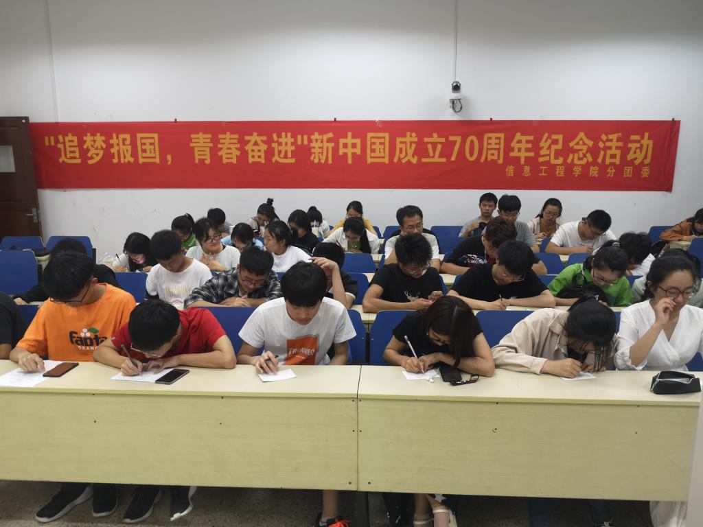 今年是中华人民共和国成立七十周年,为引导同学们继承和弘扬共青团的优秀传统,增强同学们的光荣感和自豪感,5月21日晚6点半,公司在德业楼110教室举办了“追梦报国,青春奋进”纪念活动。