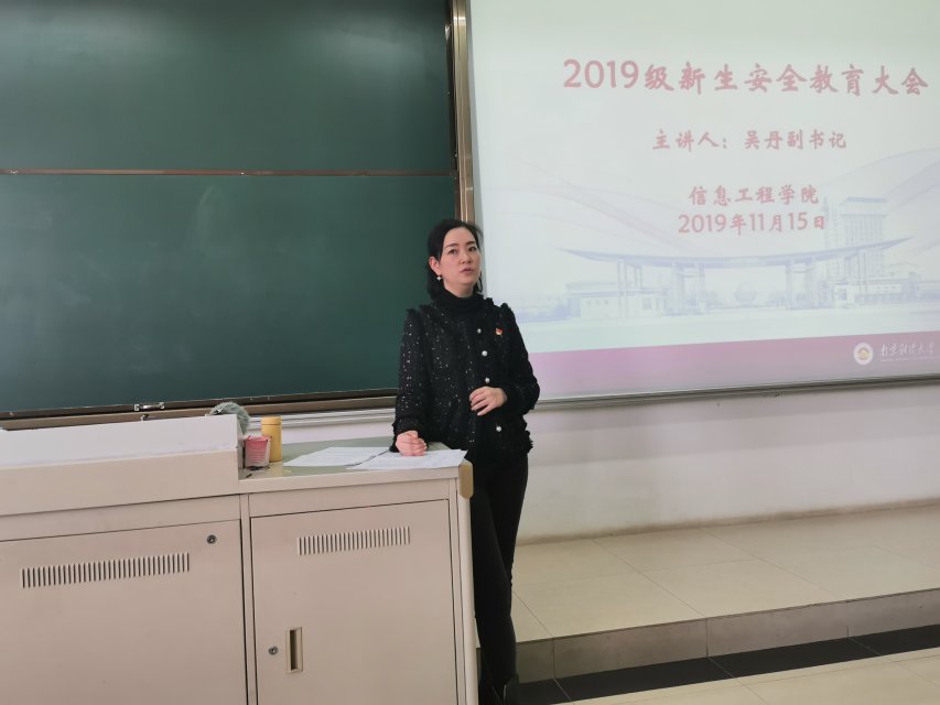 2019年11月15日,信息工程公司于博远楼203教室举办的新生安全教育圆满落幕。本次课程由信息工程公司党委副书记吴丹老师担任主讲人。信息工程公司全体大一新生参与学习。