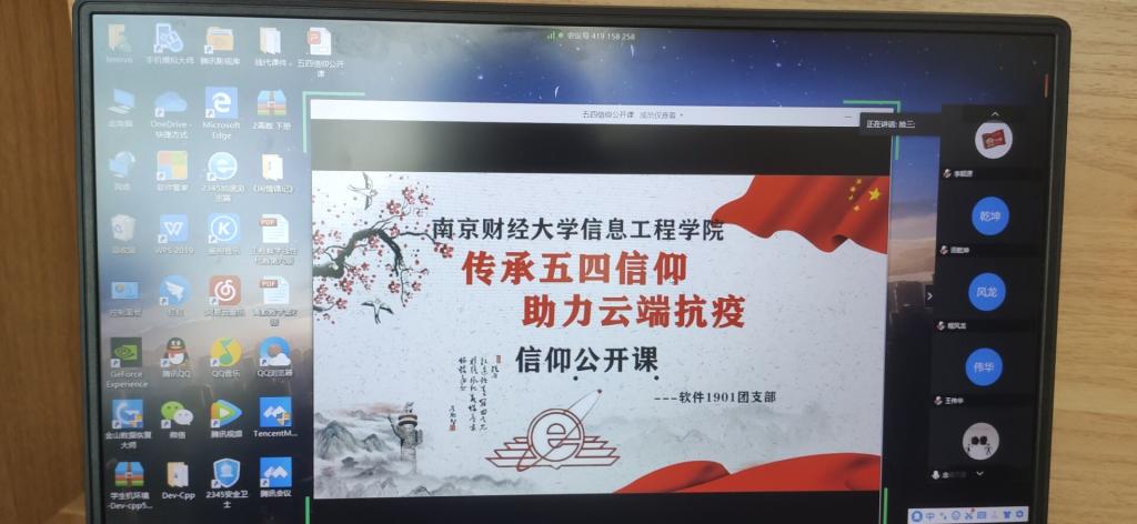 4月25日至4月28日,公司各团支部利用钉钉直播,QQ课堂,腾讯课堂等平台认真学习习近平总书记给北京援鄂医疗队全体“90后”党员的回信精神,在线上开展“传承五四信仰,助力云端战疫”信仰公开课,全院大一至大三以及研究生共有17个团支部参加。活动包括三项内容:一是由各团总支书记主持,全面介绍本次主题团日活动的重要意义;二是微团课,观看武汉战“疫”纪录片,习近平总书记给北京大学援鄂医疗队全体“90后”党员的重要回信,重温习近平总书记“4·19”重要讲话 打好互联网战“疫”;三是团员代表分享活动感悟和奋斗目标。