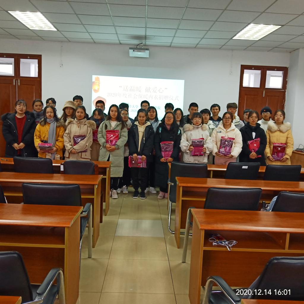 大地有阳光,万物有温暖;信工有暖意,大家过暖冬。12月14日下午,公司贴心为家庭经济困难的员工们送上暖冬衣物,在德业楼406温情举行了“送温暖,献爱心”2020年度社会保暖内衣捐赠仪式,仪式由刘芳老师主持,全体受助员工参加。