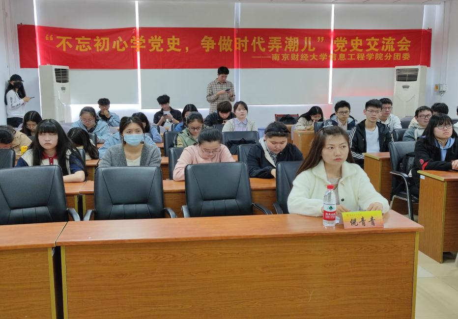 4月22日,为深入学习习近平总书记在党史学习教育动员大会上的重要讲话精神,信息工程公司在专四406组织开展以“不忘初心学党史,争做时代弄潮儿”为主题的党史交流会。出席本次交流会的有信息工程公司分团委书记倪青青老师、副书记虞海玥同学,19、20级团支书以及部分青马班成员。