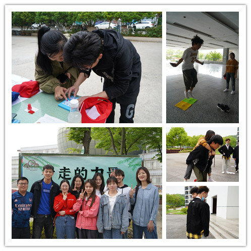 活动以图书馆作为起点,参加活动的同学们可以抽签选择四条路线,每条路线全程包含八个任务点(如A路线:南财图书馆→南财中苑篮球场→南财北苑足球场→南财西苑足球场→南财大活门口→艺设楼天鹅湖旁→南财图书馆)。在每个任务点设置不同难度的活动项目,如西苑门口:智渡赤水(五四、长征知识答题)、南财北苑篮球场:走泥丸(披荆斩棘)、南财大活门口:巧渡金沙江(五四长征华容道)等。
