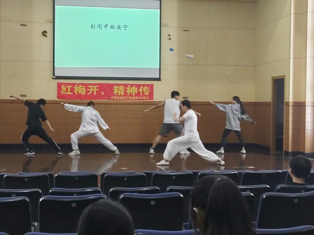 5月30日,为祝贺中国共产党成立一百周年,信息工程公司社团武术协会在专二报告厅举办了一场结合红色历史,彰显抗日精神与中华武术精神的舞台剧。