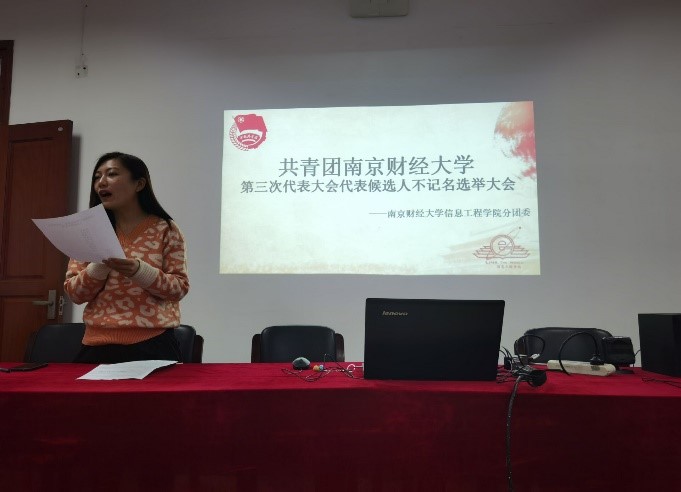 然后,由各班团支书用简洁明了的语言向大家介绍自己班级的候选人,为自己班级的候选人拉票。伴随着各班团支书的踊跃发言,场上的气氛非常活跃。本次大会秉承着公平公正的原则,在投票环节结束后,立刻现场进行了计票、唱票。在一番紧张的工作之后,本次团代会代表由软件工程1901龙以新、物联网1901张琦、计算机1902项明、大数据2002班曹雨轩、物联网2001刘大威、软件工程2001孙鑫鑫这六位同学当选代表。