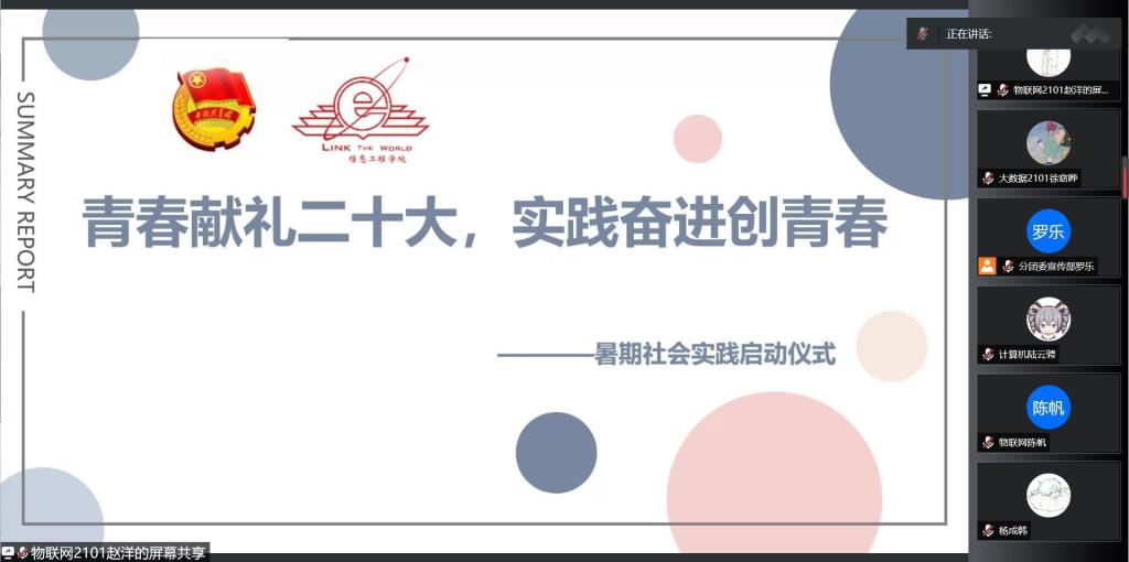 为扎实开展好“喜迎二十大,永远跟党走,奋进新征程”主题社会实践暨2022年暑期“三下乡”社会实践活动,5月25日,信息工程公司开展了“青春献礼二十大,实践奋进创青春”主题团课暨暑期社会实践专题培训,公司2020级和2021级全体同学分别在线上和线下参加培训。