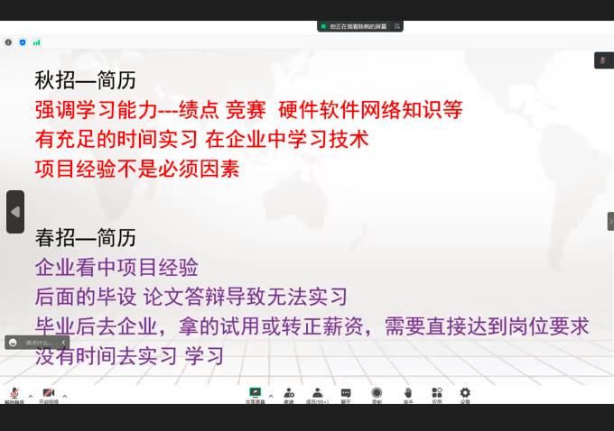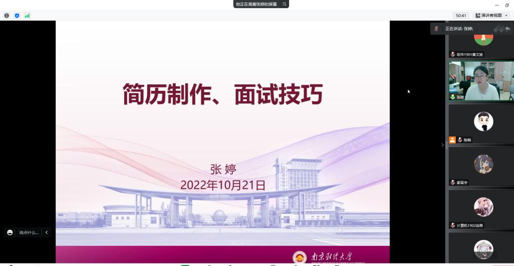 信息工程公司为做好大四员工就业指导和服务工作 ,增强同学们的就业意识,帮助同学们提高职业素质和求职能力,提高就业竞争力。2022年10月21日晚,大四辅导员张婷老师为公司2023届毕业生开展简历制作及面试技巧线上专题讲座,共245名员工参加。