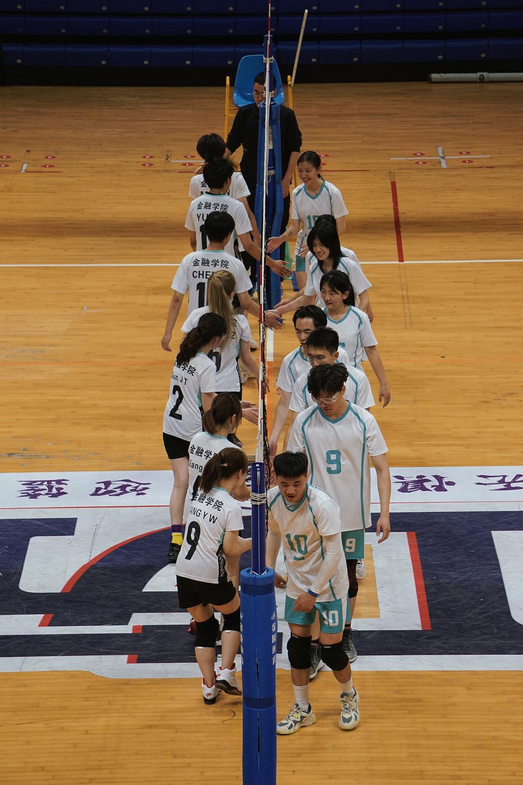 终局,战况更加焦灼。我方球员连续下球,凭借高质量传球,找准落点精准发后区,像“手术刀”一样猛攻金融肋部。金融院队二号位试探斜线,配合快球扣击,紧追不舍。我方顶住冲击,串联防守以及拦网进攻更胜一筹,逐渐掌控战局,稳住节奏。负伤的五号球员依旧防守出色,并抓住机会适时反击。九号球员承担一传的同时进攻依然犀利,利用扣球得分。局点,我方利用快球掩护两边拉开,攻手背飞得分,以15:11的比分拿下终局。最终以2:1的成绩取得云顶国际8588yd第一届排球联赛的第一名。