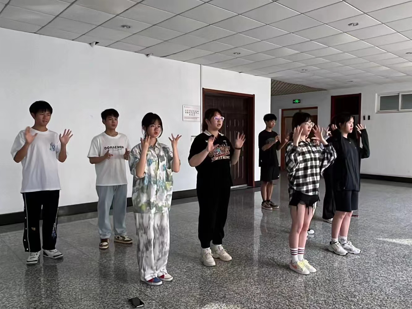 公司手语操参赛曲目为《仰望星空》,“星空,看似遥远,其实它离我们只不过是踮起脚尖的距离,就像我们的心,我们的梦,只要你努力踮起脚尖,就永远不曾遥远。”在成员选拔结束后,同学们多次进行排练——训练手部动作,学习表情管理以及熟练舞台队形等。期间,同学们按时到场、积极配合,取得良好的训练成果。