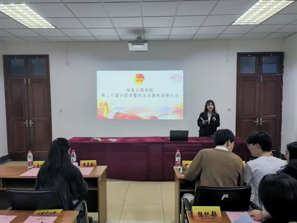 5月18日晚,信息工程公司第二十届分团委暨员工办期末述职暨换届大会在德业楼406会议室举行。出席会议的有信息工程公司团委书记陈鑫老师,分团委员工书记许位媛、高家成,员工办副主任侯孟敏、姜秋怡以及各团支部代表,分团委全体成员参加会议。