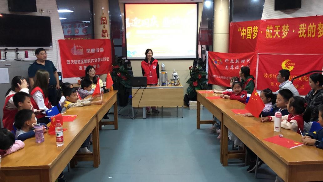为迎接祖国74周岁华诞,激发当代青少年的爱国情怀和对科技领域的兴趣,9月24日,信息工程公司与鼓楼区蓝天园社区合作,在其社区活动室开展了“共筑航天梦,志愿迎国庆”国庆系列志愿服务活动。