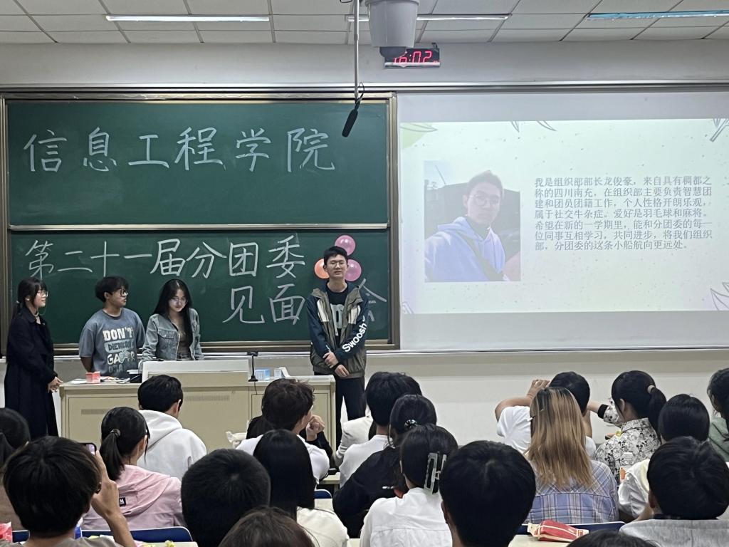 为给分团委干事们搭建一个互相了解和熟悉的桥梁,发扬团委积极向上的精神,增强各部门间的团结协作能力,为往后工作的顺利开展奠定坚实基础,10月16日,信息工程公司团委以“有幸遇见,未来有你”为主题在德业楼103举办第二十一届团委见面大会。