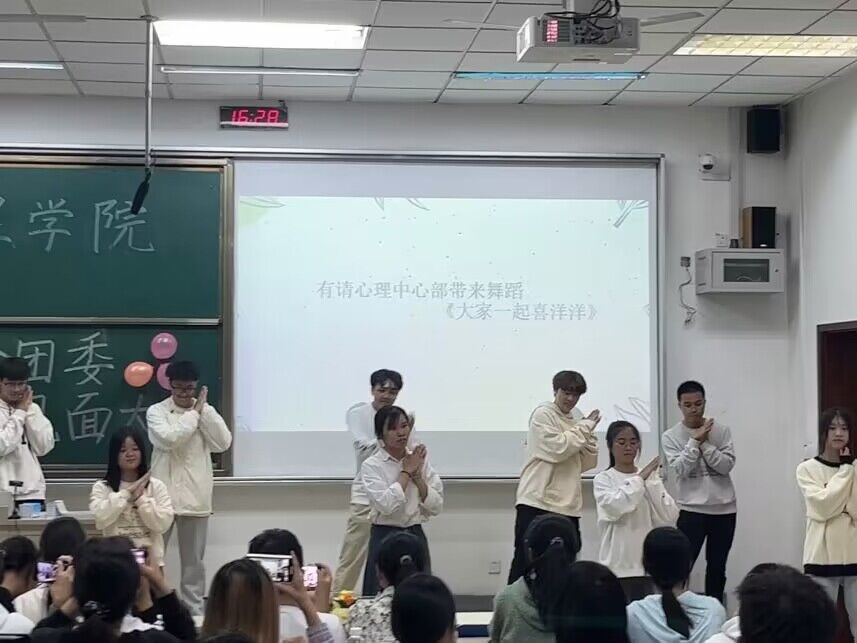 随后,各部门依次表演节目。组织部合唱《我会等》,他们用动听的旋律表达向上的追求与坚定的信念;宣传部合唱《夜空中最亮的星》,歌声充满力量与希望,使在场的人不禁跟着哼唱;心理中心部舞蹈《大家一起喜洋洋》,欢快的音律与动感的节拍,混合着他们青春的朝气,给大家留下深刻的印象;志愿服务部舞蹈《韭菜舞》,他们伴随音乐摆动灵活的身体,绽放灿烂的笑容,将此次大会推向了高潮。