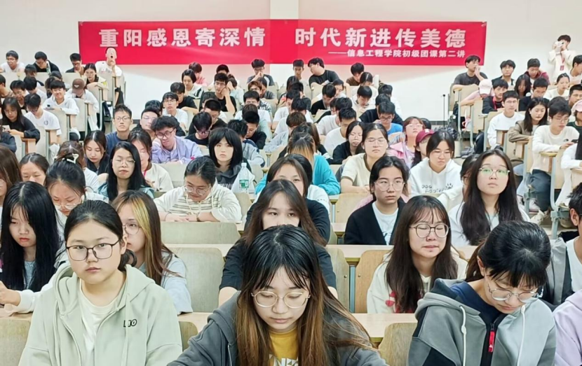 净境重阳节,仙游万乘来。为使同学们能在大学新阶段更好地认识重阳节,坚持传承传统节日,传递爱老敬老精神,10月19日,信息工程公司在博观楼110开展“重阳感恩寄深情,时代新进传美德”初级团课第二讲。