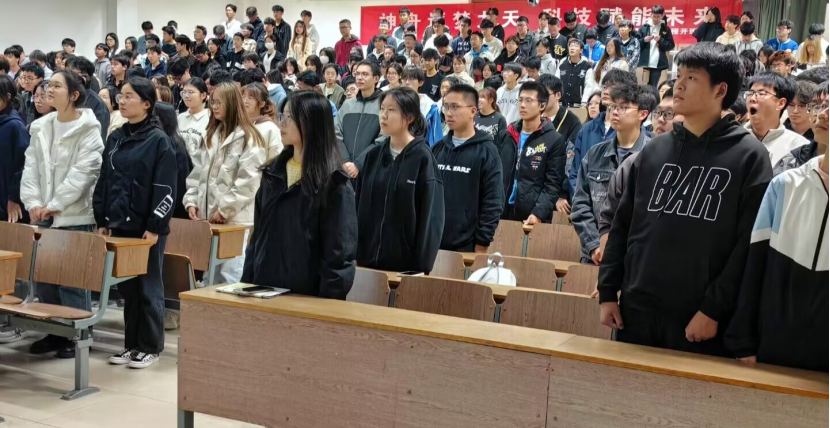 在此之后,主持人介绍中国航空航天发展历程及现状,描述航天工程从无到有的辉煌历史以及现如今取得的伟大成就。科技创新是社会发展的重要推动力,同时也是青年把握世界发展走向的工具,一代代航天人身上蕴含着的坚持不懈、敢于创新、团结合作的科研品质和“科技强军,航天报国”的理想信念让现场同学们感悟颇深。