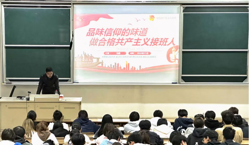 活动伊始,同学们在主持人带领下一起合唱了共青团团歌——《光荣啊,中国共青团!》。接着,陈鑫老师从公司简介、培训计划、学员管理及纪律规定等方面对信息工程公司青年共产主义公司和“青年马克思主义者培养工程”做介绍。随后,马健副书记对开班仪式进行总结发言并讲授青马班开班第一课——《品味信仰的味道,做合格共产主义接班人》,希望每位青马班学员能够把握信仰的内涵,向合格共产主义接班人迈进。