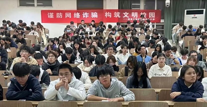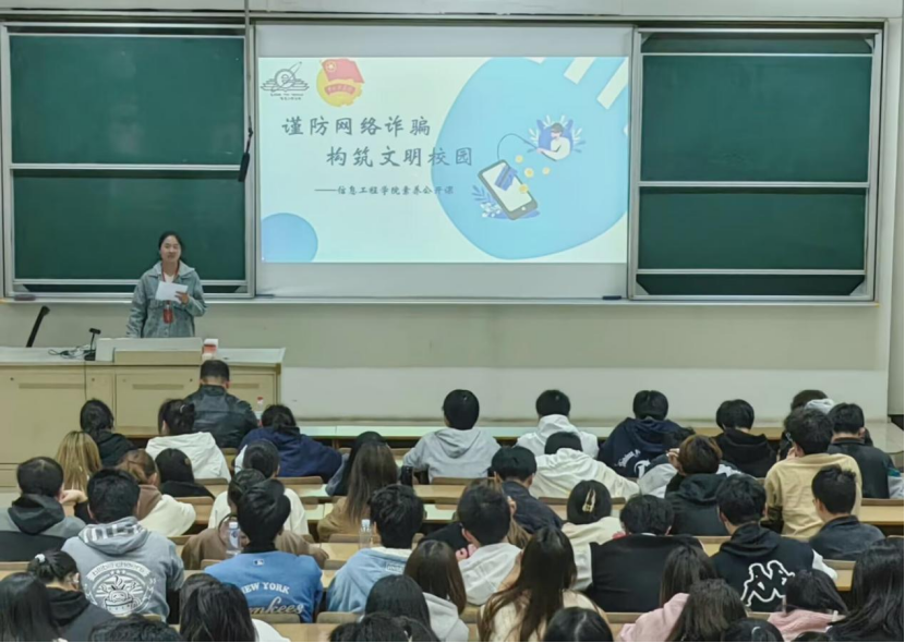 近些年科技发展迅速,网络诈骗手段不断翻新,在生活中无孔不入。为进一步加强2023级新生防诈骗意识,提高识别网络诈骗的能力,保障自身利益,维护校园净土,2023年11月10日,信息工程公司在博观楼301开展“谨防网络诈骗,构筑文明校园”素养公开课。