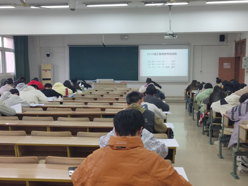 为迎接即将到来的大学英语四级考试,增加同学们对于大学英语四级考试规则的熟悉度,增强同学们的自信心,帮助同学们以积极的心态应对考试,信息工程公司于12月10日下午在博文楼203与博文楼205开展了英语四级模拟考试,23级同学积极报名参加。