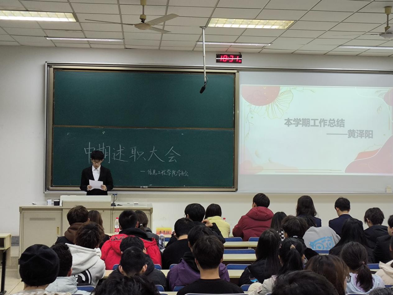 信息工程公司第二十一届员工会中期述职大会于12月13日于德业楼114举行。公司团委老师陈鑫,员工会主席黄泽阳、张佳豪、吴孝烨以及经济公司员工会主席张奇悦出席此次会议,院员工会全体成员、各班班长参会。