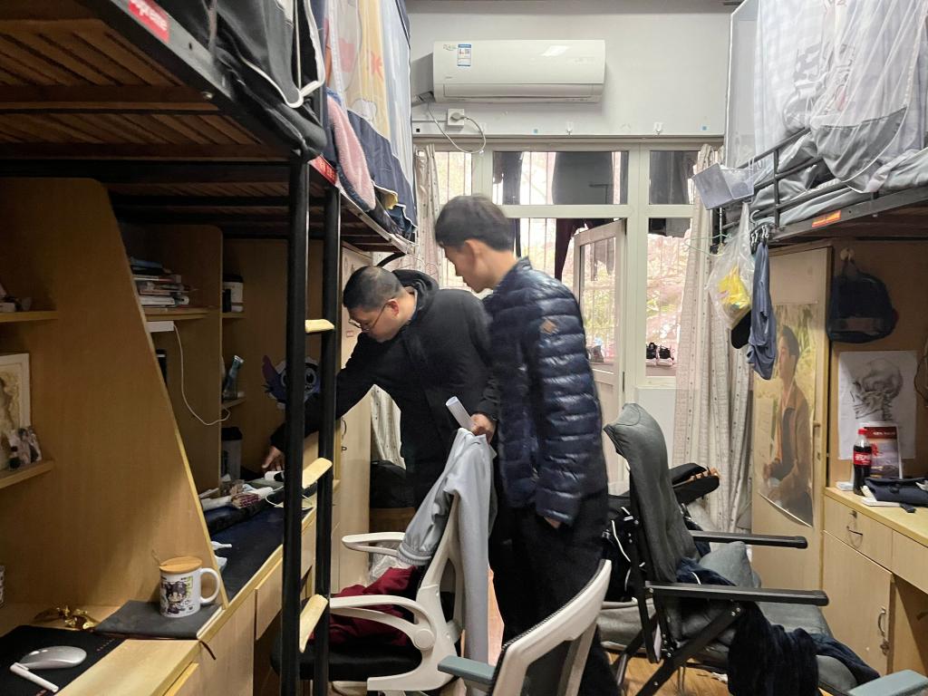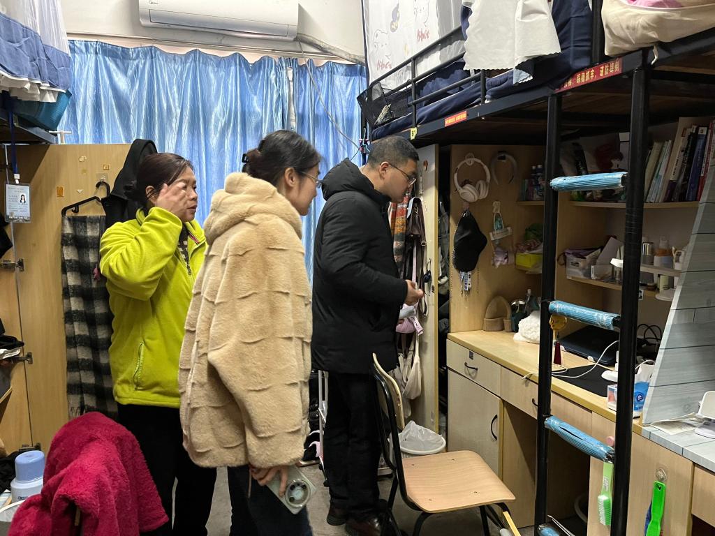 本次检查主要包括查看员工宿舍是否有私拉电线、违规使用大功率电器、员工离开宿舍后各类插头开关有无关闭以及宿舍卫生等问题。在检查过程中,大部分宿舍整体卫生情况较好,但有个别宿舍还存在一定安全隐患,比如:小寝室门上挂有钥匙人却不在宿舍,笔记本电脑随意丢放在桌面,电线裸露在外的接线板仍在使用以及部分插座没有关闭等,马健副书记在检查过程中逐一进行了指导并提出解决措施,希望检查人员以及宿舍同学们高度重视安全问题,防患于未然,消除可能引发宿舍危险的各种安全隐患。辅导员老师表示将第一时间组织员工进行整改并召开主题班会加强对员工安全意识的教育。