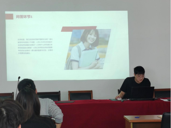 为加强同学们的校园安全意识,提高应对突发事件的能力,4月10日中午,信息工程公司在德业楼406会议室召开了以“总体国家安全观,创新引领10周年”为主题的校园安全教育活动。本次会议由信息工程公司员工会综合事务中心负责人袁超担任主持人,员工会全体成员参会。