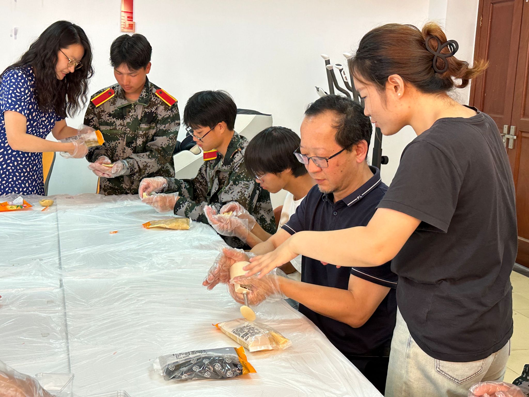 活动当天,“师生共融·月饼DIY”活动也在如火如荼地进行着。活动现场,参与活动的各民族员工和老师一起按照事先分好的小组就位,每组都配备了必要的工具和材料,包括饼皮、馅料、模具等。在老师的悉心指导下,师生们合作完成月饼的制作。