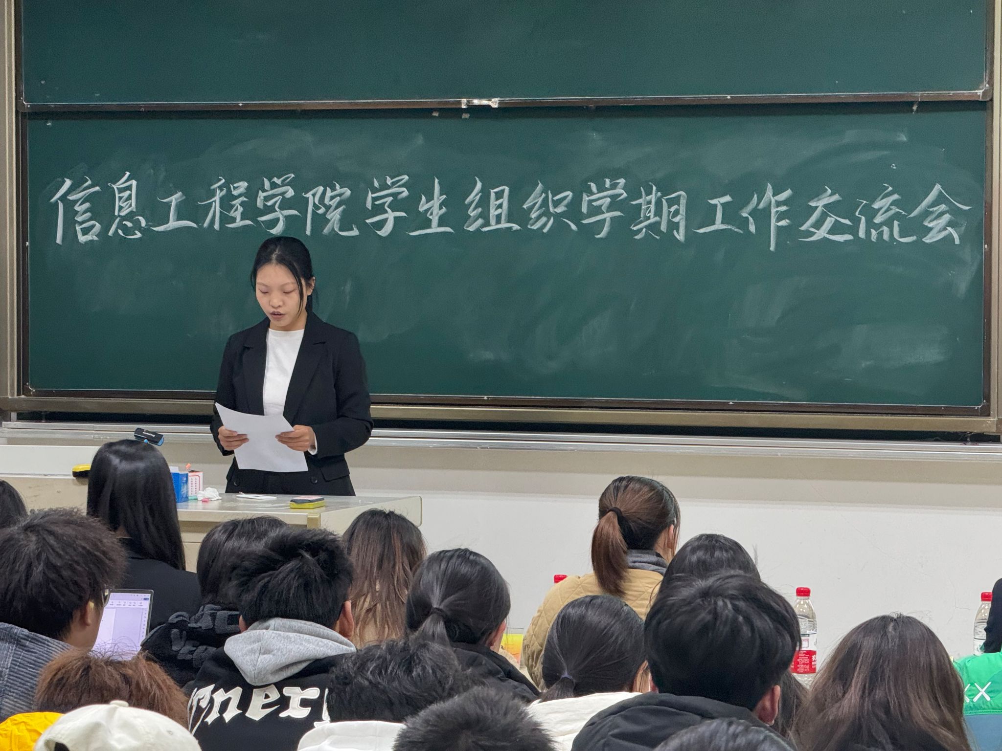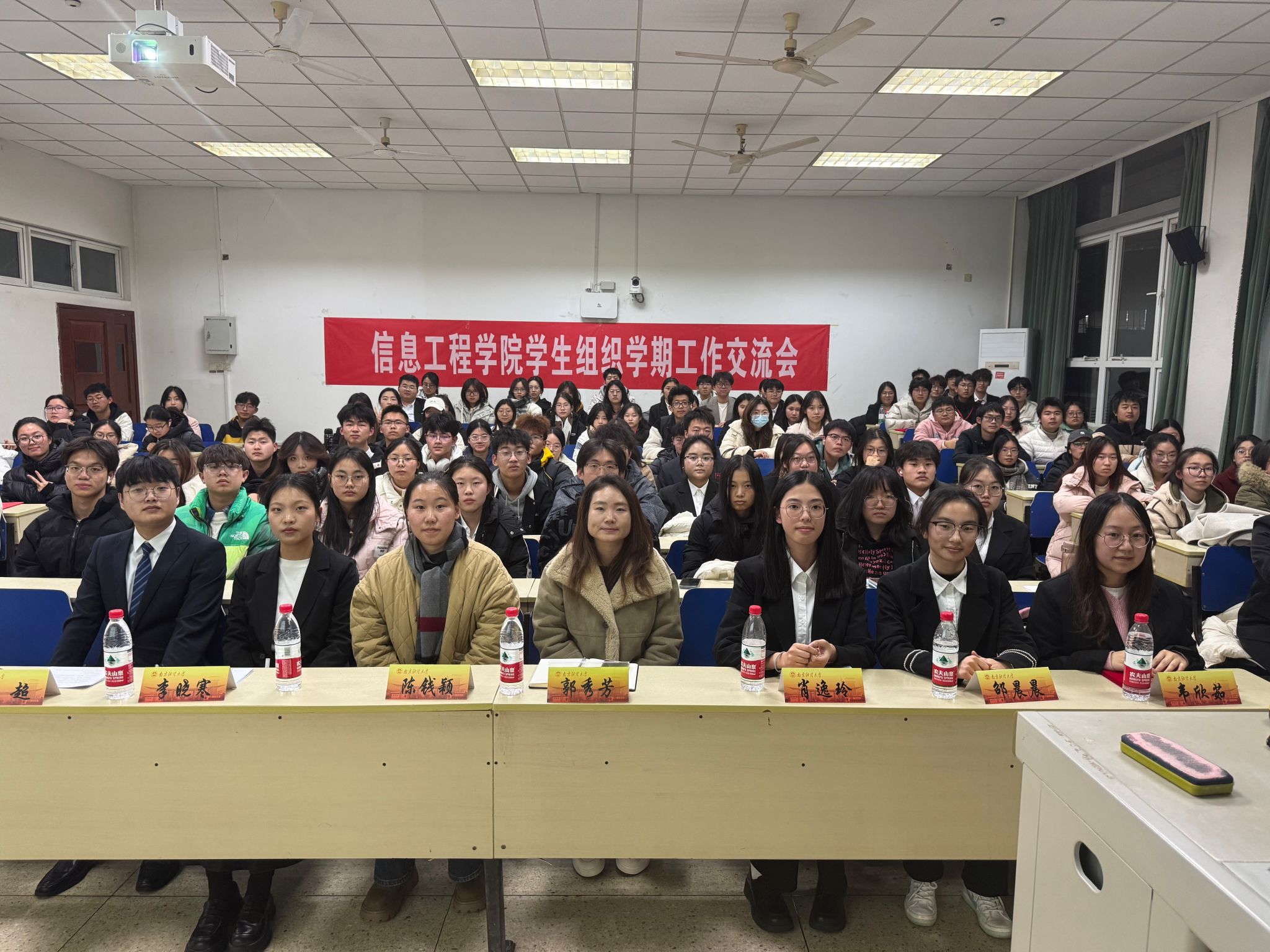 为总结本学期分团委、员工会工作情况,促进部门间工作交流,2024年12月9日,信息工程公司员工组织学期工作交流会于德业楼118教室举行。院团委书记郭秀芳老师、法公司员工会主席陈钱颖、信工院员工会主席肖逸玲、信工院员工会主席邵晨晨、信工院员工会主席韦欣茹、信工院团委副书记(员工)李晓寒、信工院团委副书记(员工)袁超、各班级代表及分团委、员工会全体成员参加会议。
