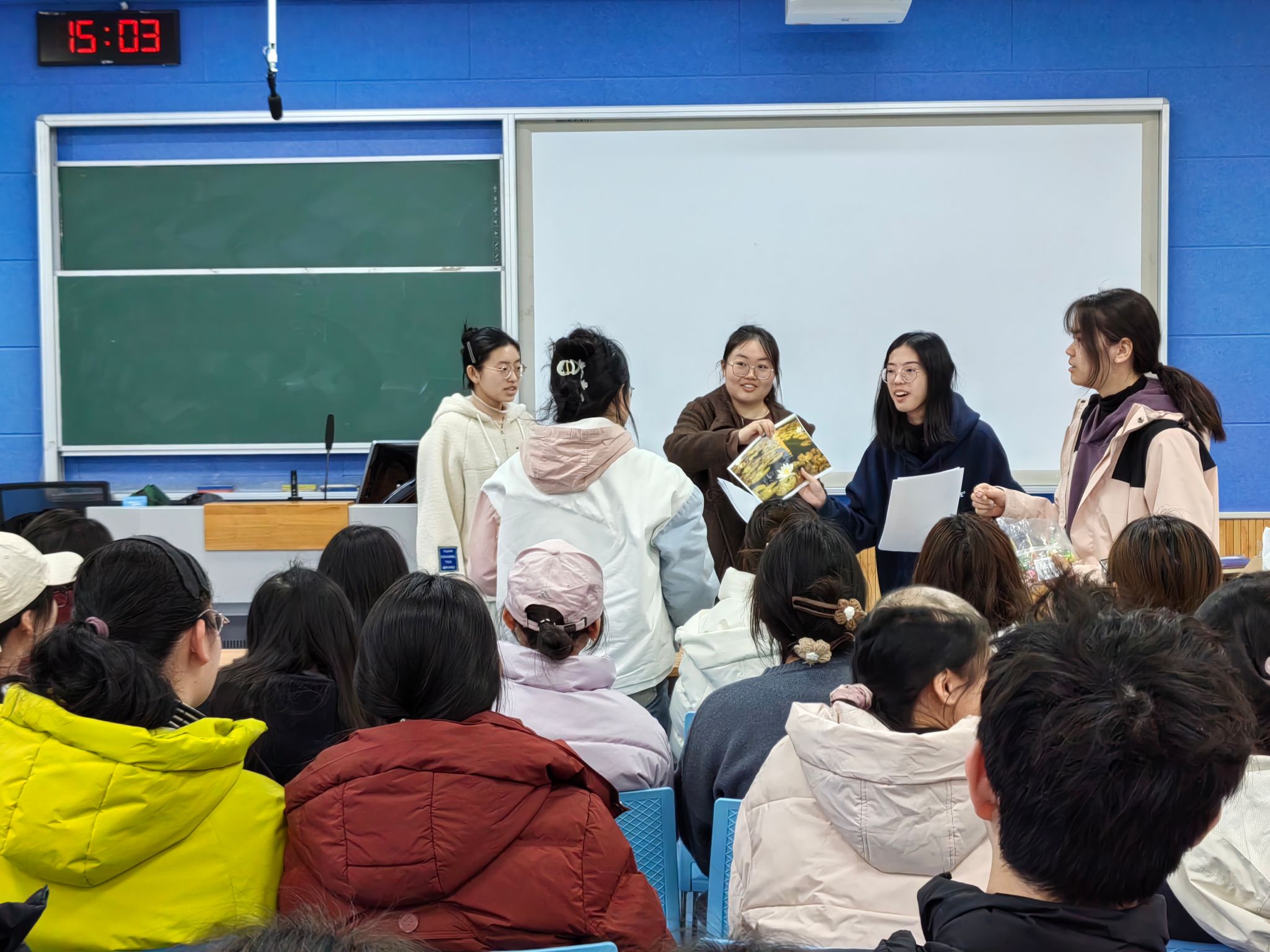 以抢答计分形式的“看花图猜花名”环节紧随其后,现场共展示樱花、玉兰、海棠等50种春季花卉图片。现场竞争激烈,笑声与掌声交织。活动特别融入校园植物实景对照,引导同学在竞答中关注身边自然景物,滋养欣赏爱护之心,为春日校园增添一份暖意。