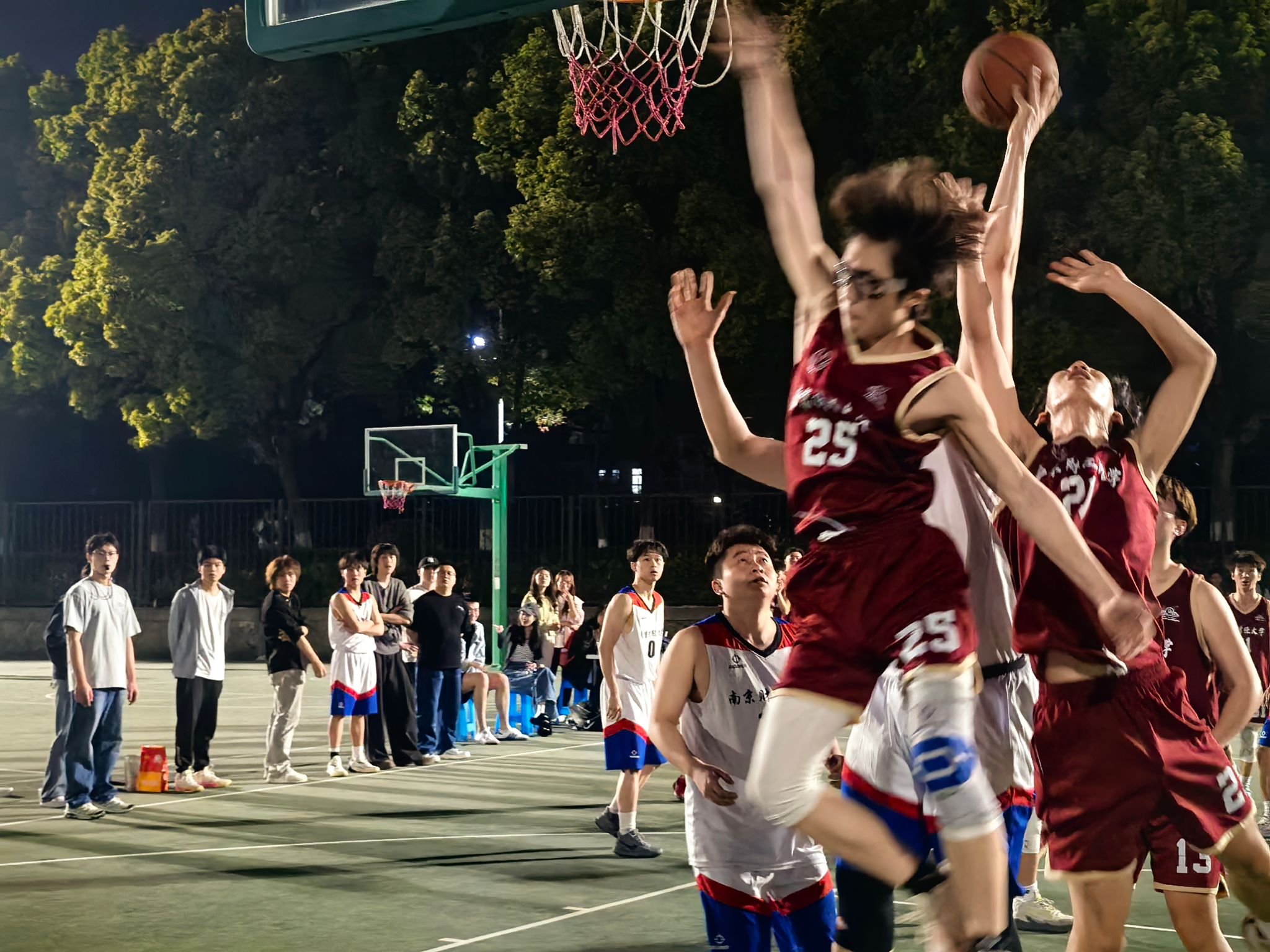 暮色初合的球场上,橘色夕阳为球员们镀上金边。开场哨响,公司16号徐林聪,凭借精准的罚球率先打破僵局,弧线划过空气的瞬间,操场爆发欢呼声。公共管理公司则以教科书般的联防予以回应,首节结束时双方比分胶着。