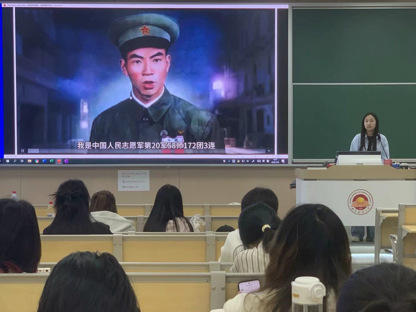 接着,同学们踊跃发表看法,纷纷表示小高岭之战虽地势狭小,却关乎全局:“正是因为有无数志愿军前辈在关键时刻舍身坚守,才为后续战役赢得了宝贵时间。”在大家热烈的讨论中,杨根思烈士深受触动,对新时代青年能够继承和发扬革命精神给予高度评价,并寄语大家:“新时代的青年要牢记历史,不负重托,为实现中华民族伟大复兴不断奋斗。”