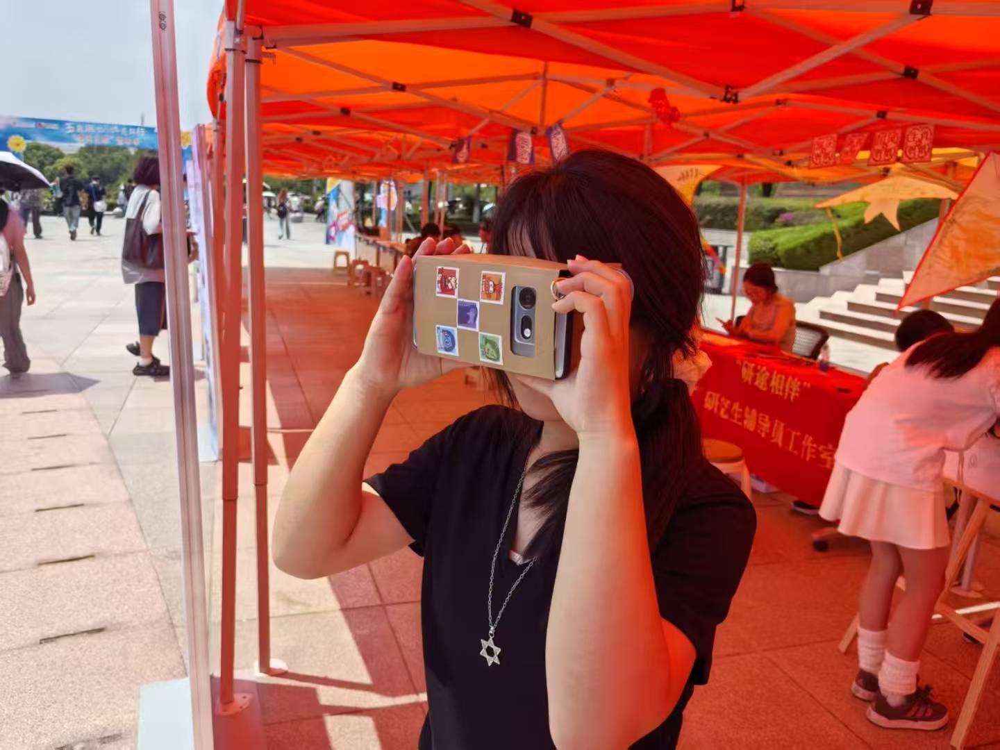 活动分为“笑脸签名留念”、“南财表情包解析”、“VR技术体验”三个环节。在“笑脸签名留念”环节,员工在签名板上绘制个性化表情符号,通过艺术表达记录当下心境,最终形成展现当代老员工精神风貌的集体创作成果;在“南财表情包解析”环节,员工通过辨识AI生成的校园主题表情包,深入理解设计理念与校园文化内涵,强化对公司的认同感,进一步增强荣校爱校意识;在“VR技术体验”环节,公司提供专业VR设备供员工体验,并设置实践操作区。参与者通过亲手制作简易VR眼镜,掌握基础技术原理,实现科技素养与心理调适能力的同步提升。