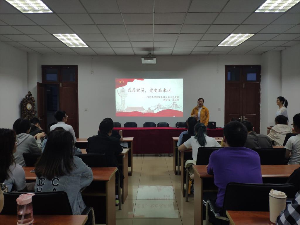 6月2日,信息工程公司本科生党支部在德业楼406会议室举办“我是党员,党史我来说”系列微党课第四讲。信息工程公司党委书记周亚芳、公司党委副书记袁军、本科生党支部书记张婷、各支部党员和积极分子参加了本次活动。