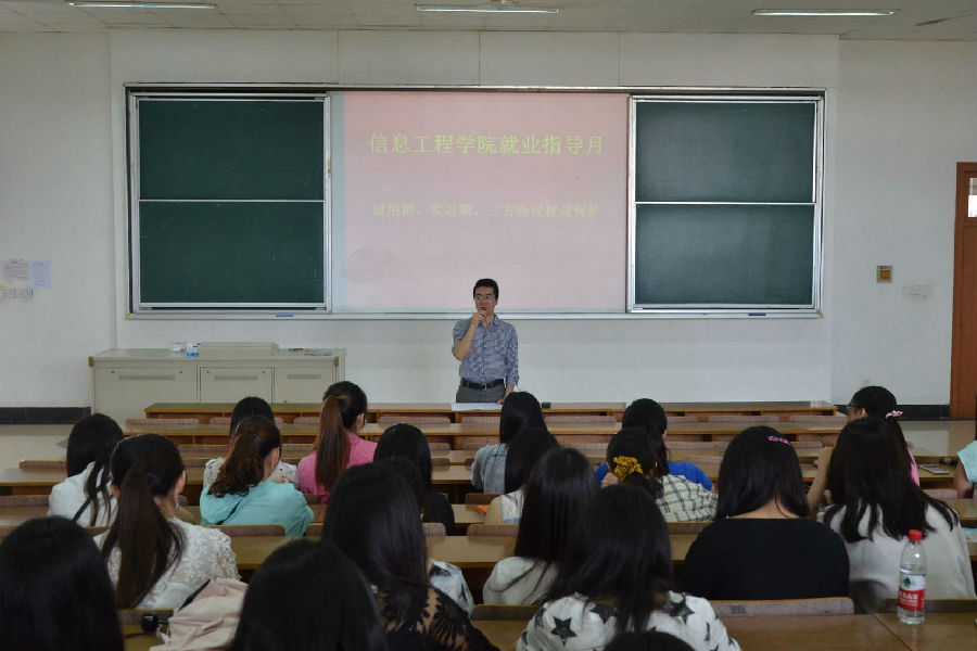 大会上,潘雪峰老师主要详细地讲述了老员工签订就业协议中三方协议的相关知识。他说:“三方协议一旦签署,就意味着老员工第一份工作基本确定,但并不是绝对,签劳动合同时要注意四个方面,签三方协议时也要留心六个细节,明确试用期,职务等各个方面。”同时潘老师还强调毕业生在离校时应将户籍问题处理妥当,否则将会给你的生活带来很大的不便。最后,潘老师就现场员工所提问题一一进行解答。